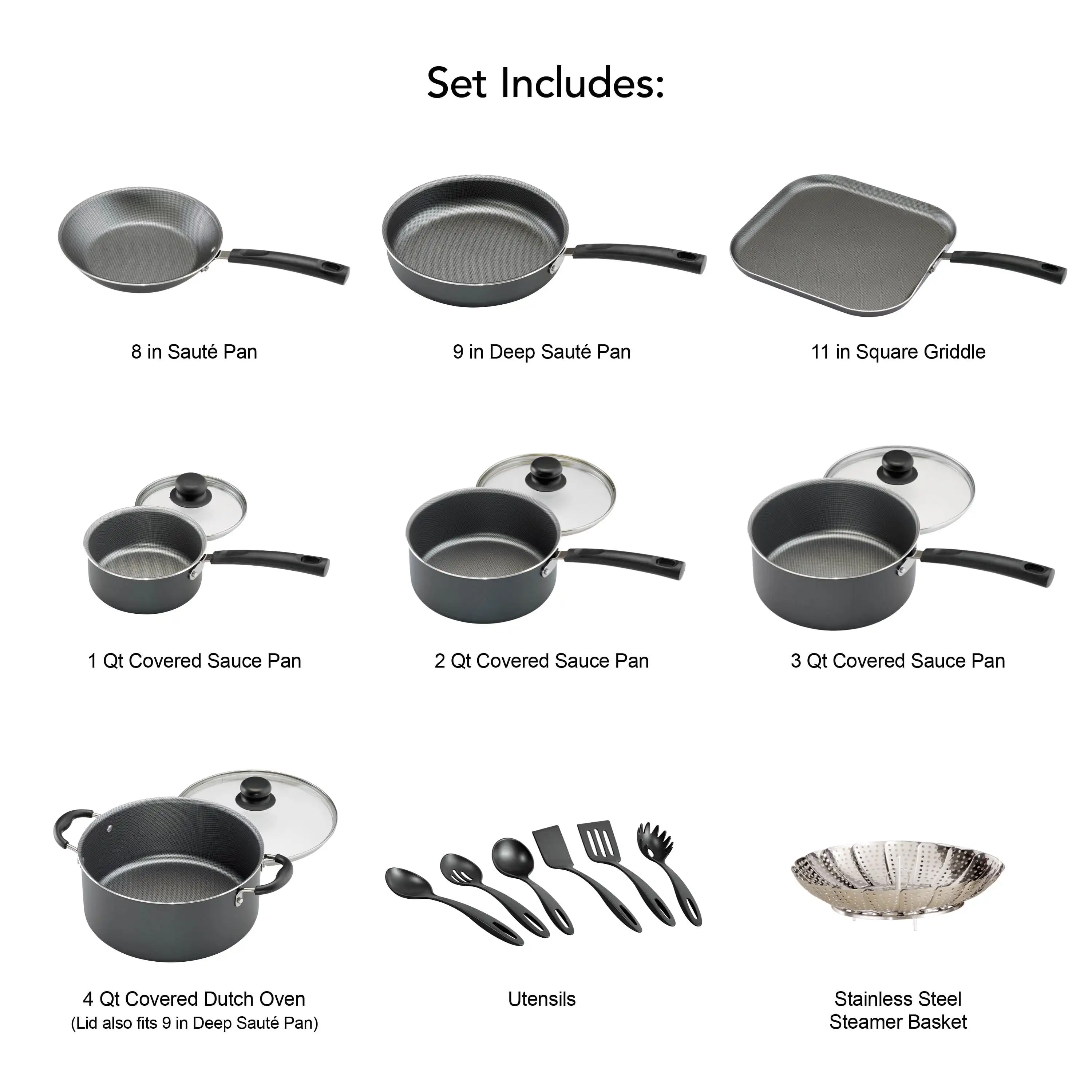 Primaware 18-teiliges Antihaft-Kochgeschirr-Set, stahlgraues Kochtopf-Set