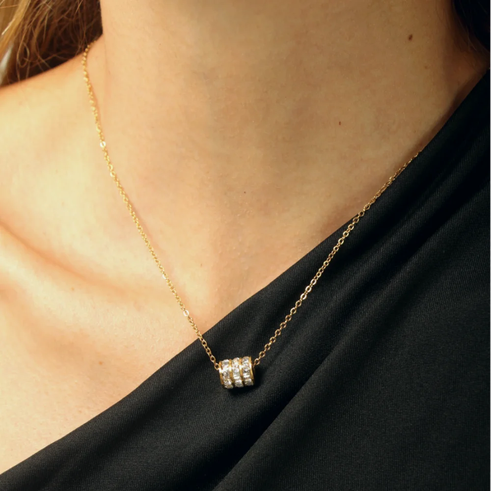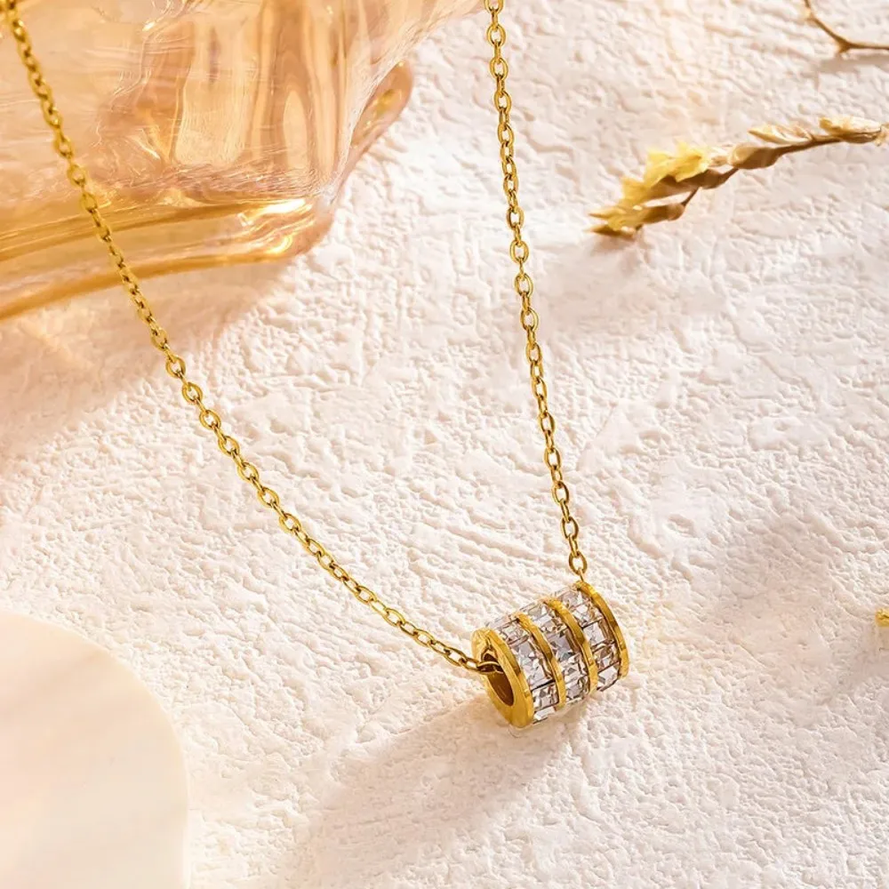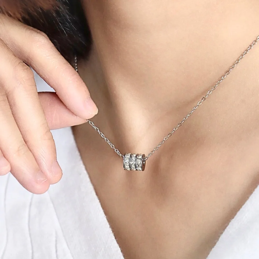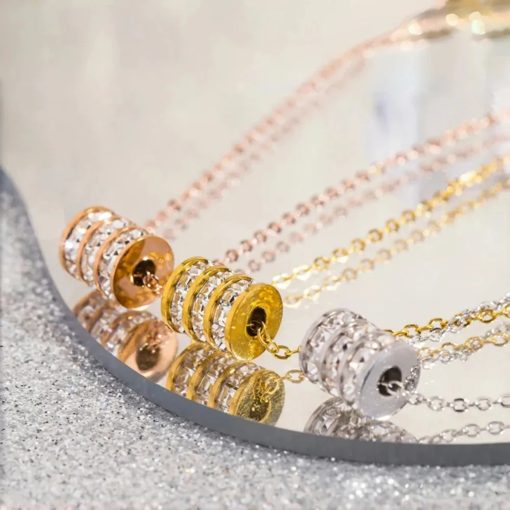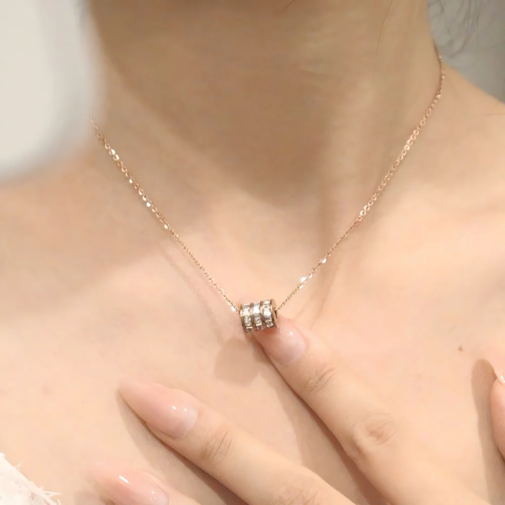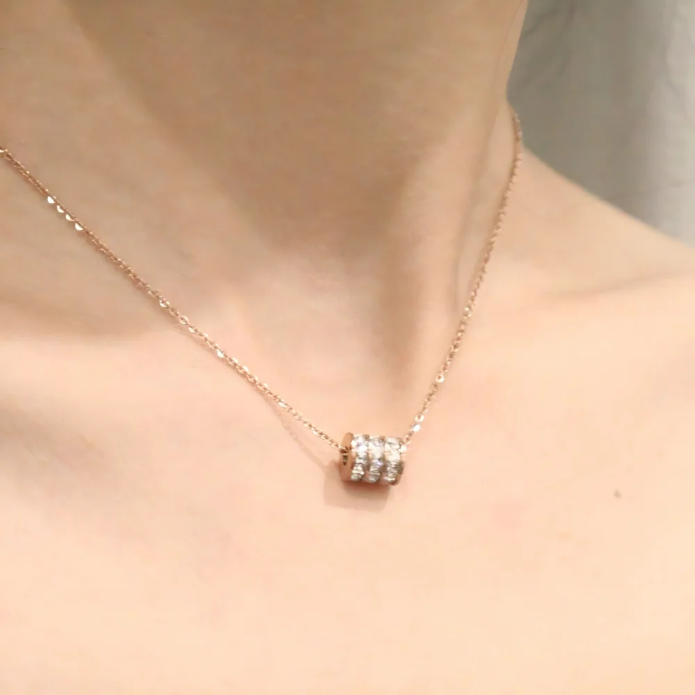 Cylinder zircon lucky pendant necklaces for women female sweet wedding jewelry ladies stainless steel clavicle chain drop ship