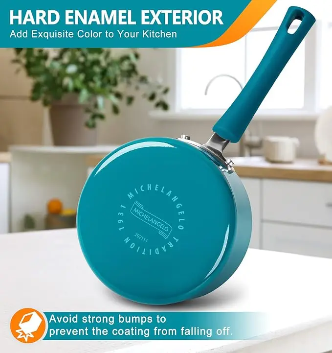 ATEMBERAUBENDE KÜCHENKUNSTWERKE – Dieses emaillierte Topfset sieht exquisit aus und passt zu jeder Kücheneinrichtung. Die farbenfrohe, langlebige Emaille-Außenschicht ist bruchfest. Sie werden sicherlich gerne aus diesen schönen Töpfen servieren!