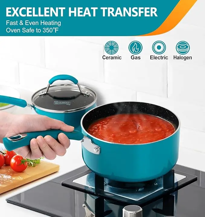 HERVORRAGENDE ANTIHAFT-LEISTUNG – Diese Kochtöpfe sind mit einer natürlichen Granitbeschichtung versehen, die frei von APEO und PFOA ist. Sie erhalten ein ultra-antihaftbeschichtetes Kocherlebnis und eine mühelose Reinigung.
