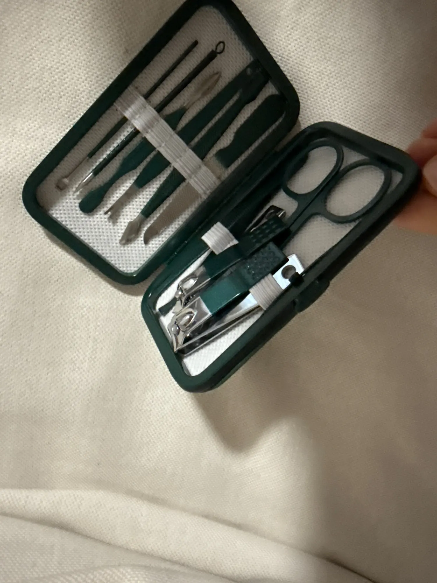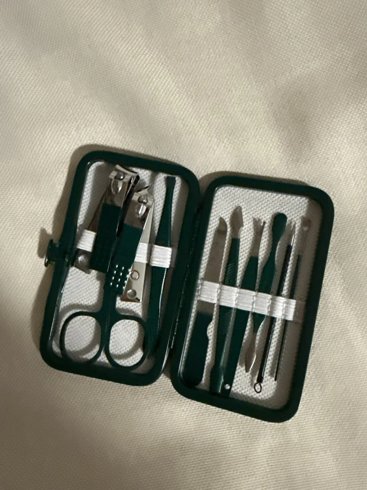 This compact manicure set is surprisingly high quality. The case is small, durable, and easy to carry, and inside it has everything you actually need — clippers, scissors, tweezers, cuticle tools, and extra grooming pieces. Each tool fits securely in place and feels sturdy, not cheap.
