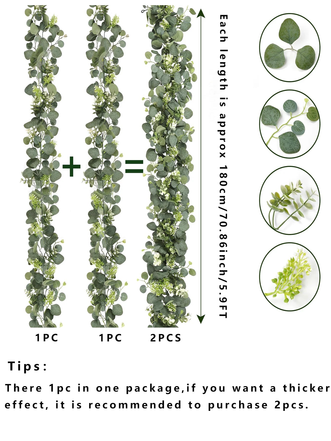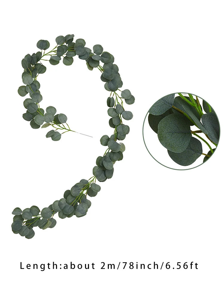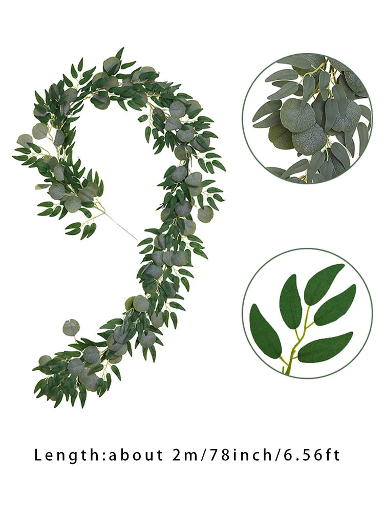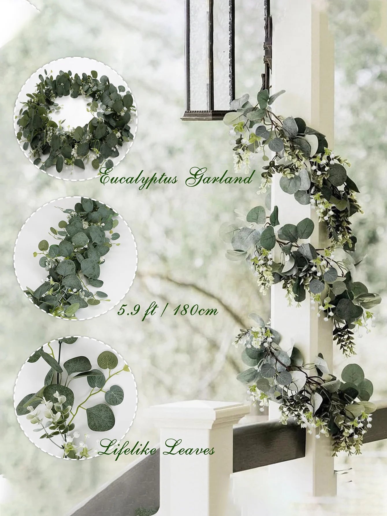1 Stück künstliche Eukalyptusgirlande mit weißen Blumen und Beeren