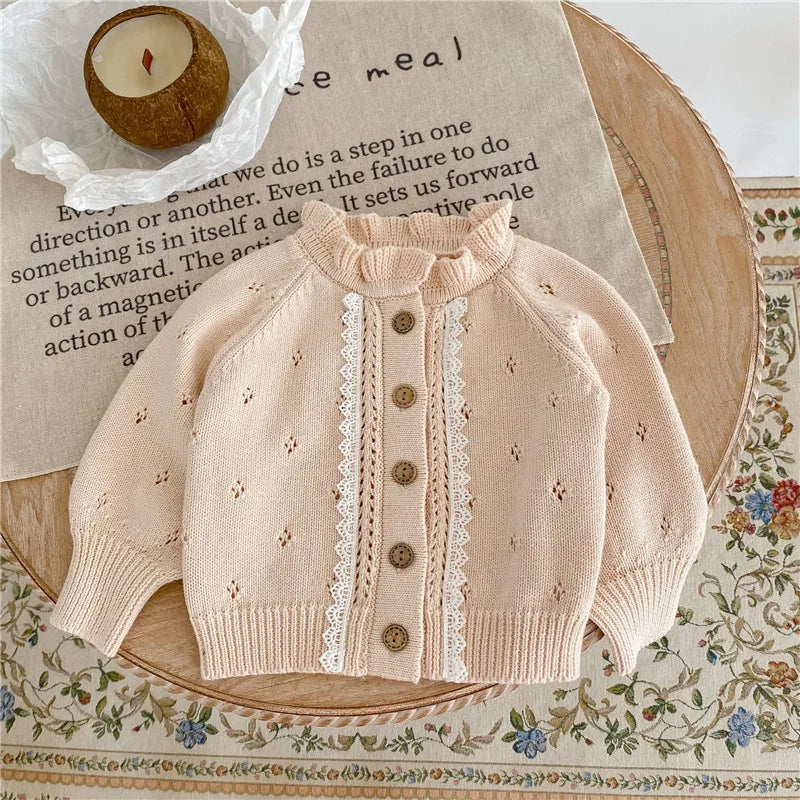 Herbstlicher Baby-Mädchen-Cardigan mit Spitze