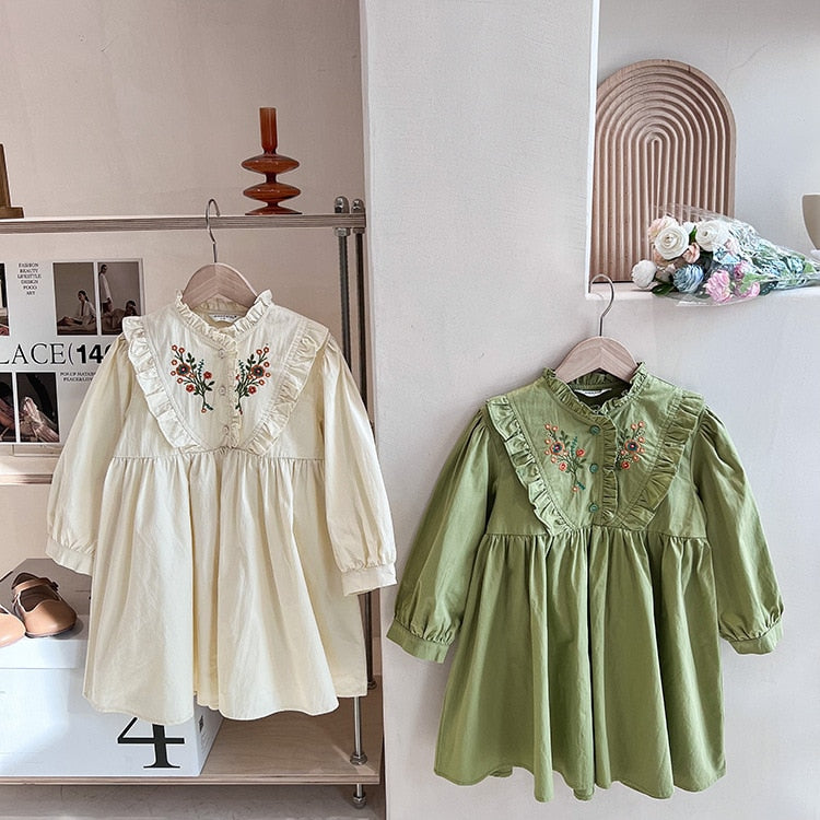 Langärmliges Prinzessinnenkleid aus Baumwolle für Mädchen