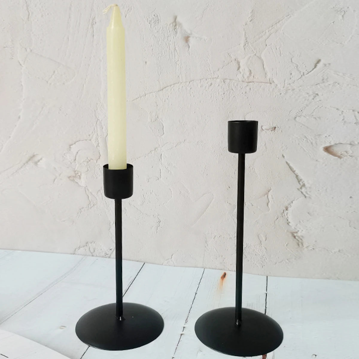 2-teiliges Set mit schwarzen Stabkerzenhaltern aus Metall