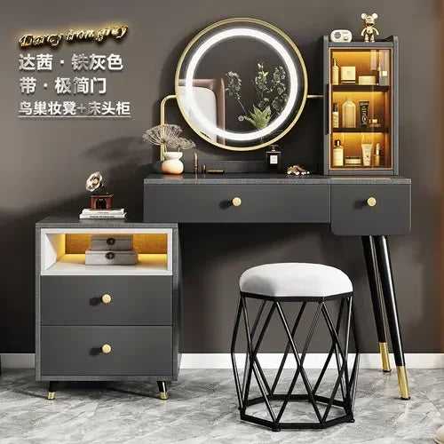 Nordischer Schminktisch fürs Schlafzimmer mit Dimmspiegel