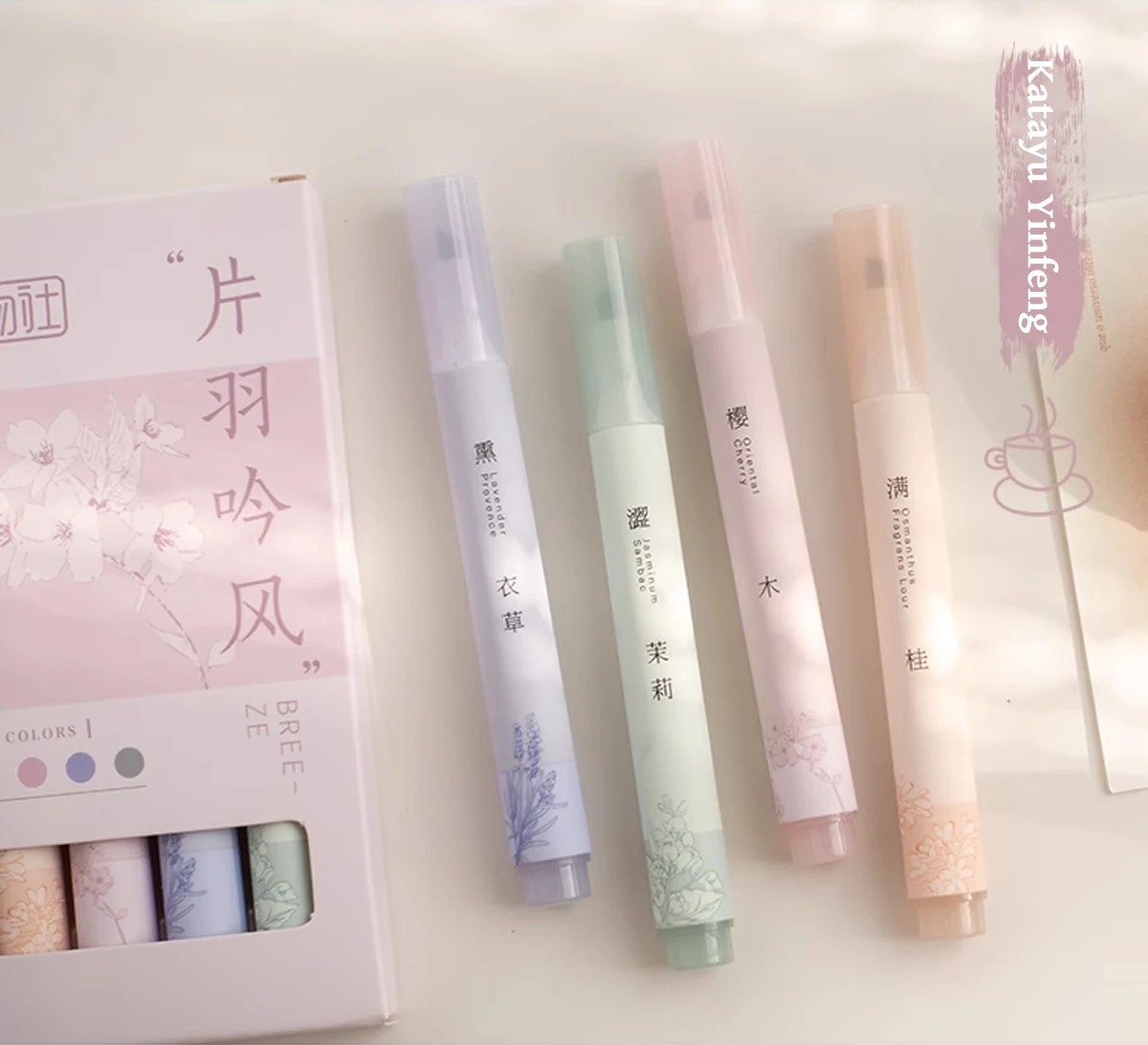 4 Stück Gelstifte mit Kaffeemotiv, weiches Brot, 0,5 mm schwarze Tinte
