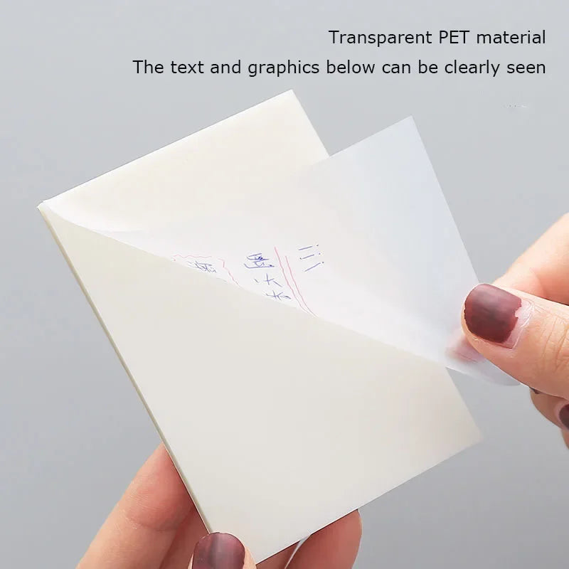 100 Blatt transparente, wasserfeste Haftnotizen aus PET – wiederverwendbare Notizblock-Aufkleber für Schule und Büro