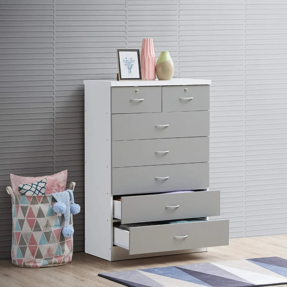 Kommode mit 7 Schubladen und Beistellschrank mit 3 Regalen
