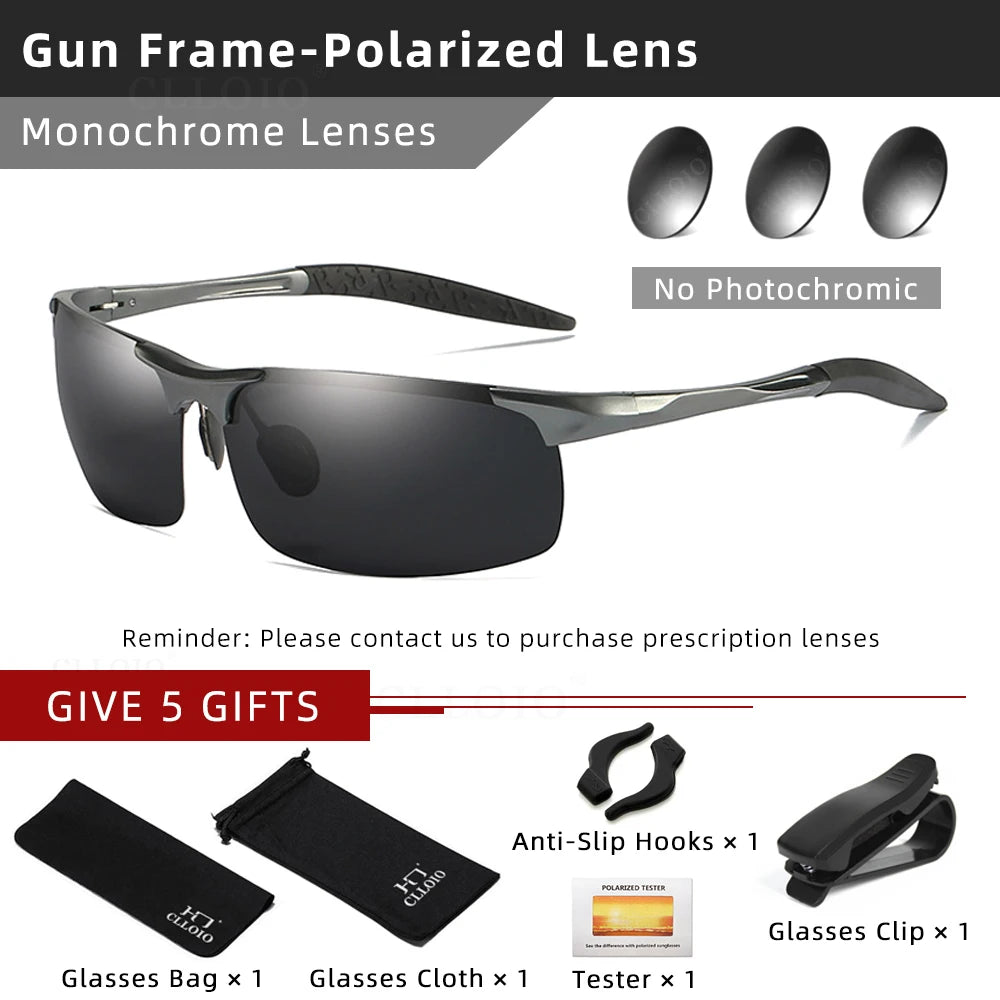 Photochrome polarisierte Sonnenbrille aus Aluminium für Herren, Tag und Nacht, blendfrei, UV-Chamäleon-Brille