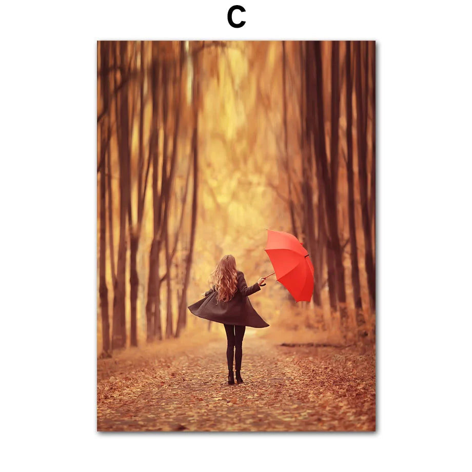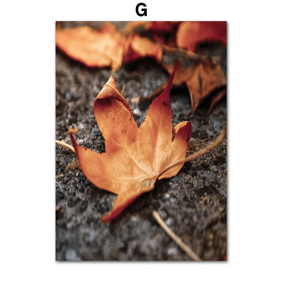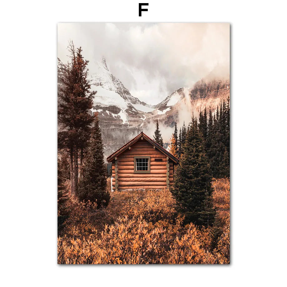 Herbstwald Leinwanddruck - Blockhütte & Ahornblatt Natur Wandkunst