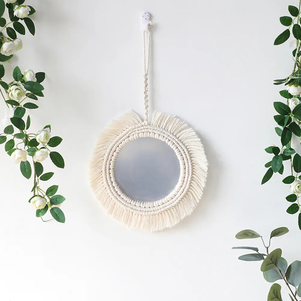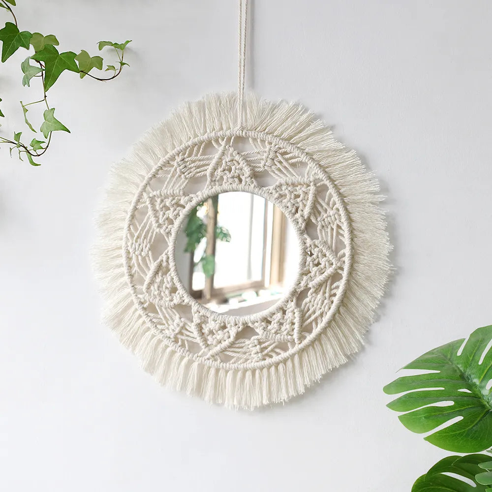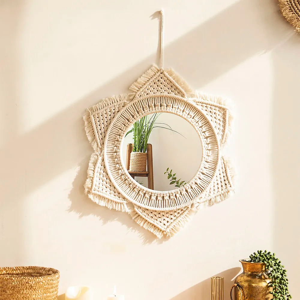 Boho Makramee Runder Wandspiegel