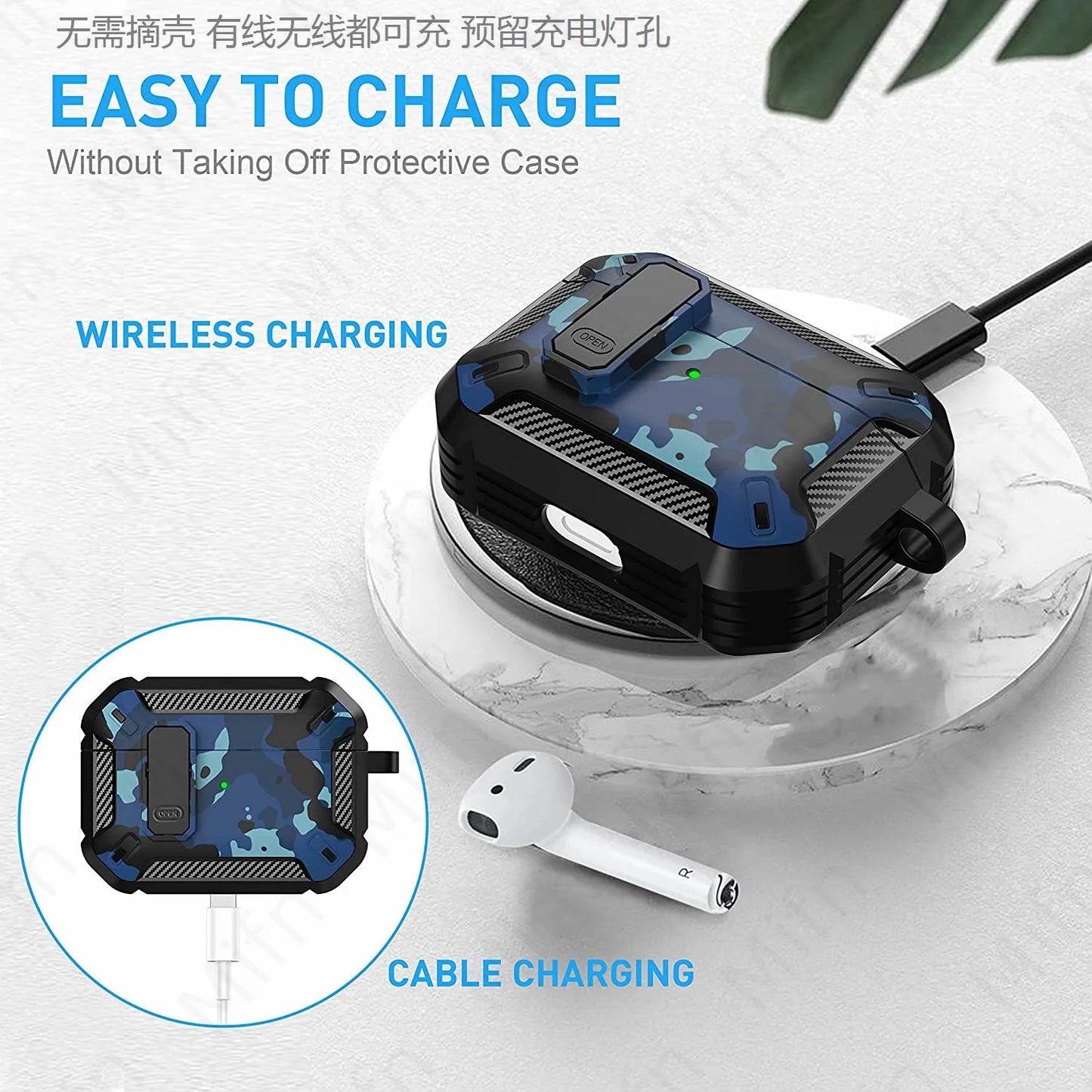 AirPods-Hülle mit sicherem Verschluss in Camouflage-Grau