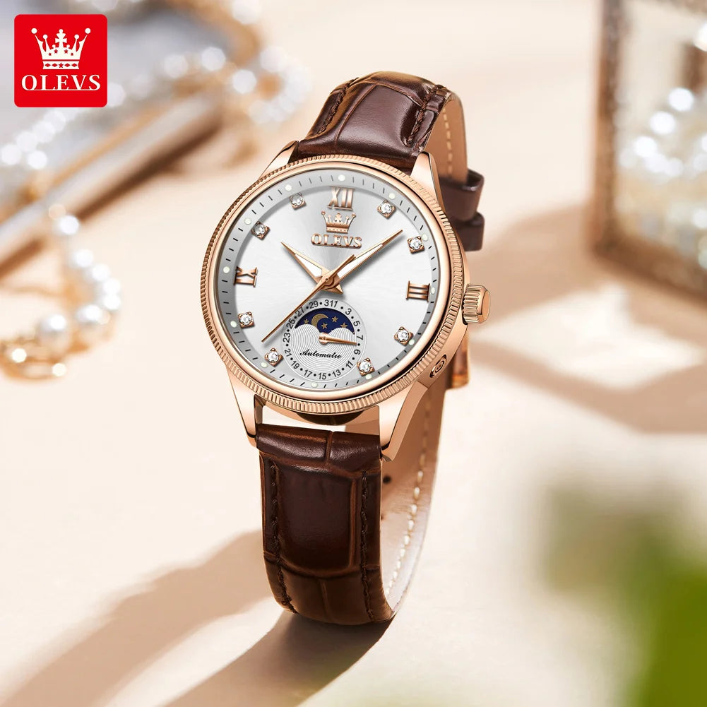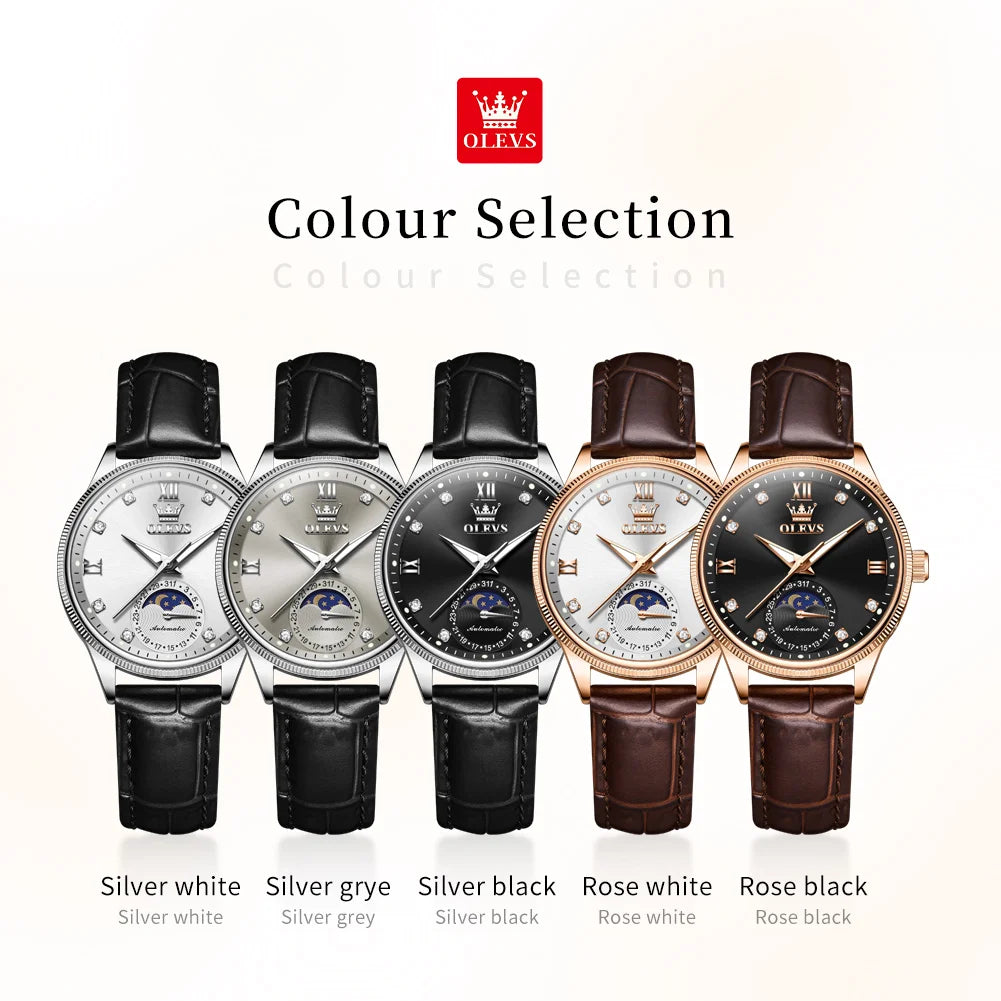 Uhrenset für Paare – Automatische wasserdichte Armbanduhren mit Mondphase für Sie und Ihn
