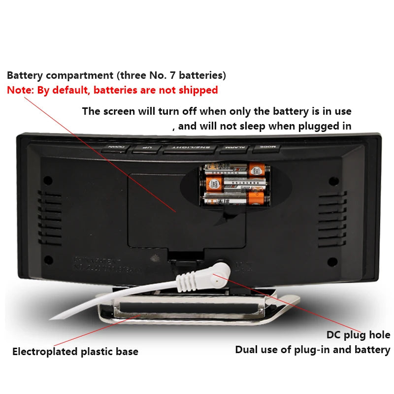 Kreative gebogene LED-Uhr mit Spiegel und Doppelfunktionswecker