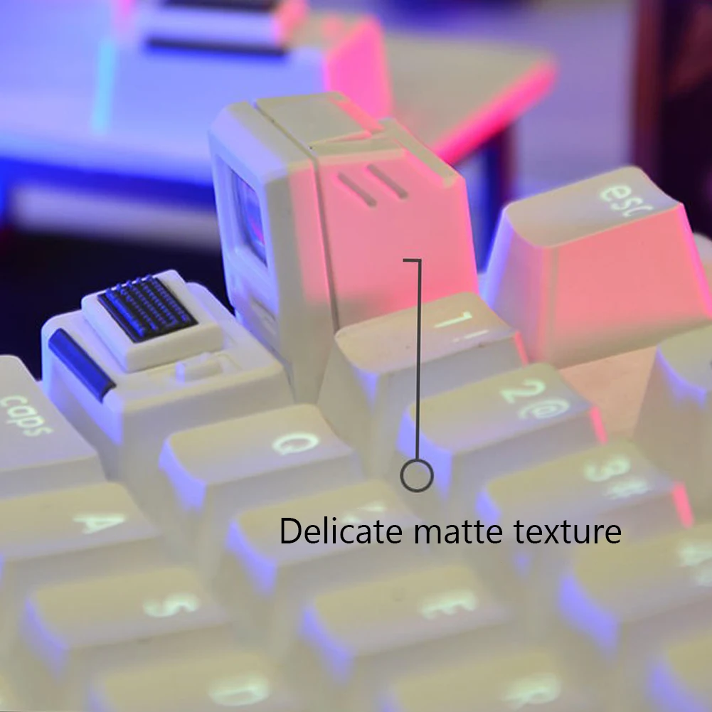 80er Retro-Tastenkappen für klassische Tastaturen, lichtdurchlässige Tastenkappen für Tastaturen, klassische ESC 1.5U-Tabulatortastenkappen-Kits für mechanische Tastaturen Besonderheit: 1. Zubehör: Personalisierte Tastenkappen, Retro-Kleincomputerserie (einschließlich 2 Tastenkappen + 1 magnetische Kleintastatur), machen Sie Ihre Tastatur modischer und niedlicher. 2. Verfahren: Durch den Einsatz eines hochpräzisen Spritzgussverfahrens mit Stahlschleifmitteln entstehen keine Risse, kein Verblassen, keine Ölflecken, genauere Details, Korrosionsbeständigkeit, Hitzebeständigkeit, Ölbeständigkeit und der ursprüngliche Zustand der Tastenkappe kann beibehalten werden. 3. Verwendung: Universelle Kreuzbuchse für mechanische Tastaturen, die Tastenkappe entspricht der ESC-Taste und die Tastaturbasis entspricht der Tabulatortaste, zum Ersetzen der Tastenkappe der mechanischen Tastatur. 4. Gehäusematerial: Die Tastenkappen bestehen aus hochwertigem ABS-Spritzguss. 5. Größe: Die Größe der Tastenkappe beträgt 2 x 1,7 cm.