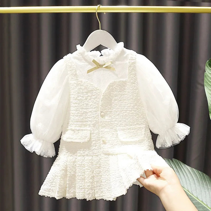 2-teiliges T-Shirt-Kleid mit Cartoon-Zahlen-Aufdruck und Rundhalsausschnitt für Kinder