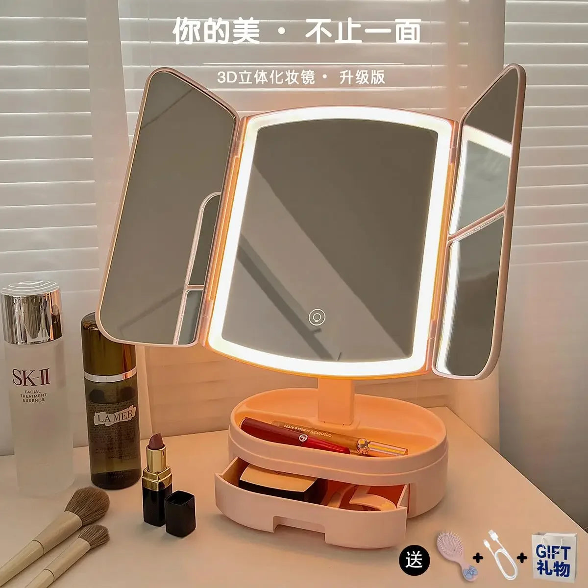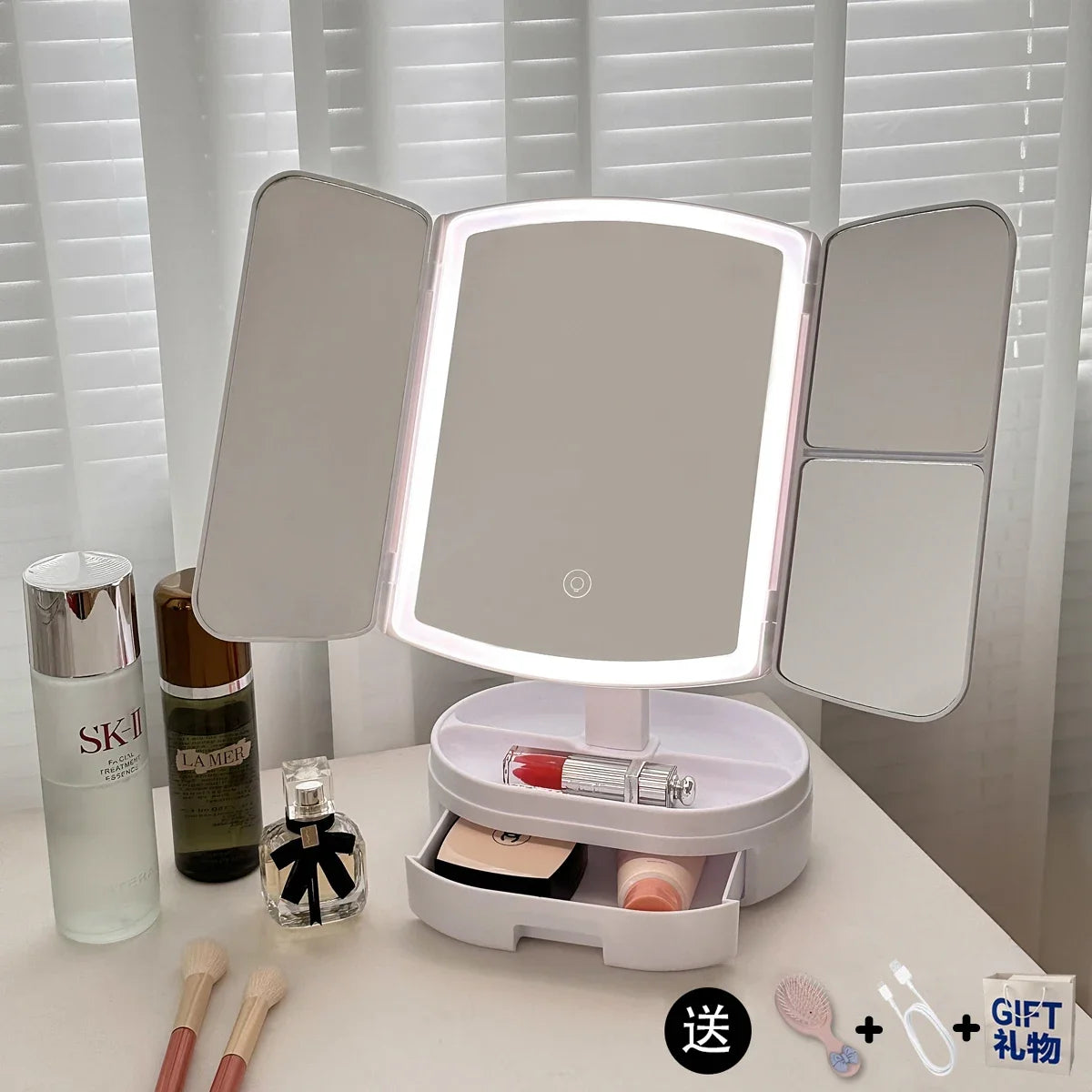Faltbarer LED-Schminkspiegel
