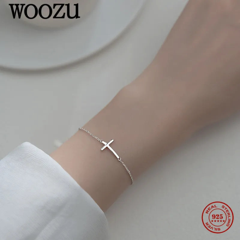 Glänzendes Kreuz-Charm-Armband – Sterlingsilber