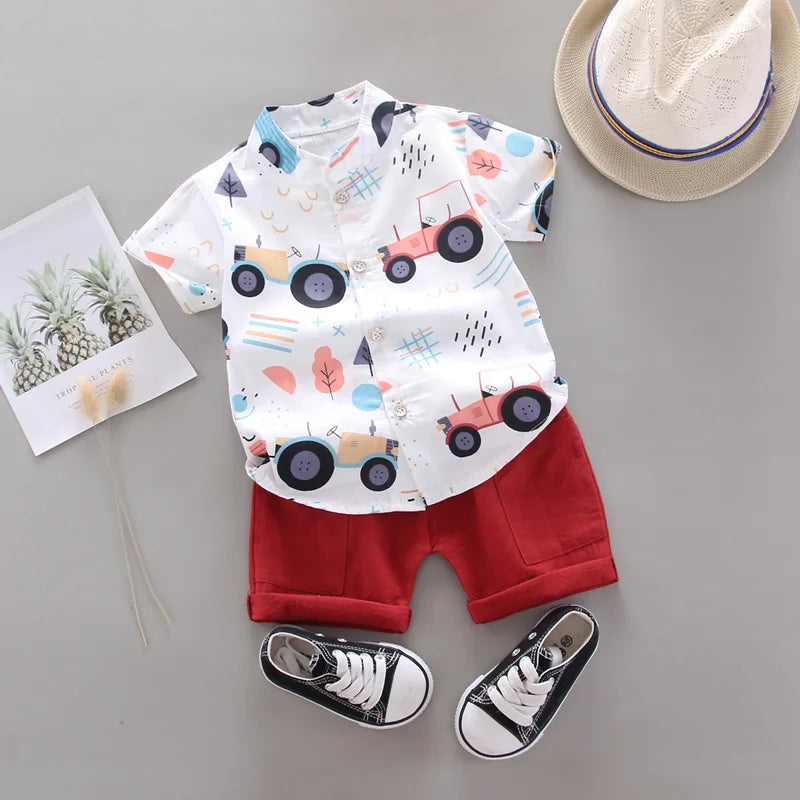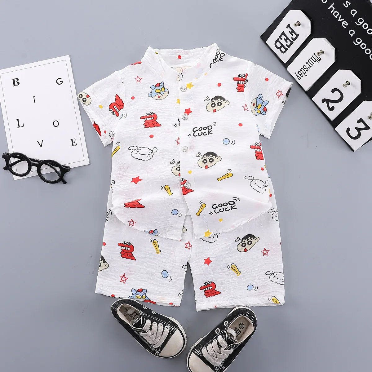 Kurzarm-Shorts-Set mit Volldruck für den Sommer für Säuglinge und Kleinkinder