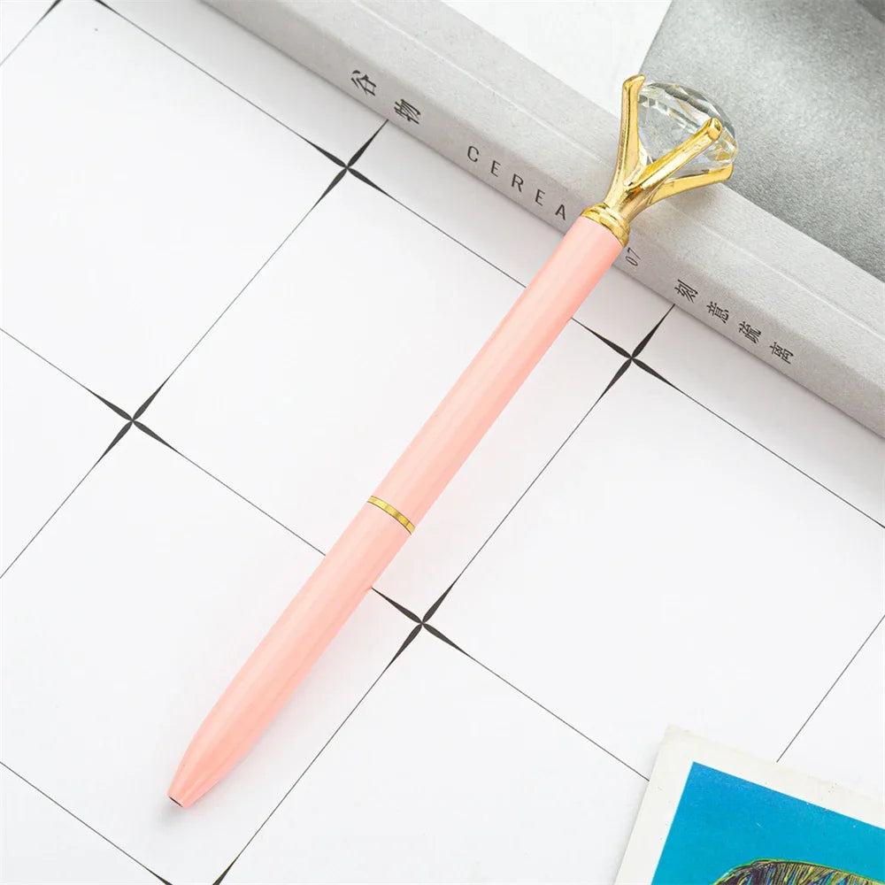 Großer Kugelschreiber mit Diamantkristall, 1,0 mm Metallfeder, mit Strasssteinen verziert