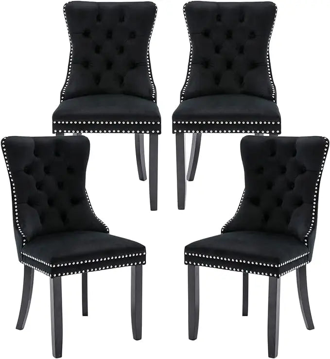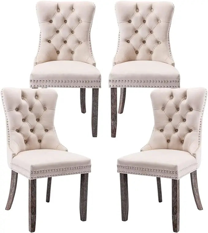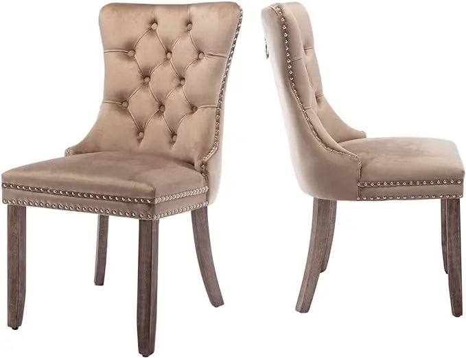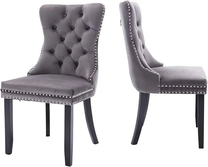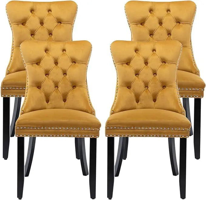 Luxuriöse Esszimmerstühle aus getuftetem Samt mit Ringzugbesatz