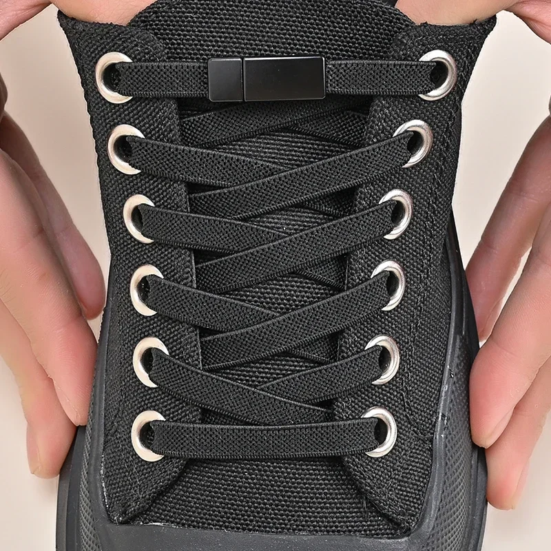 Elastische Schnürsenkel mit Magnetschnalle zum Binden – Verbreiterte, flache Schnürsenkel mit Metallschloss