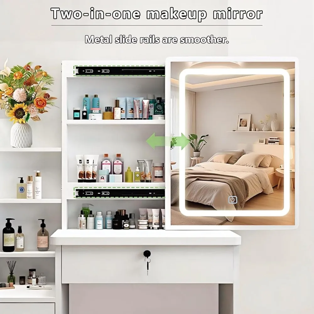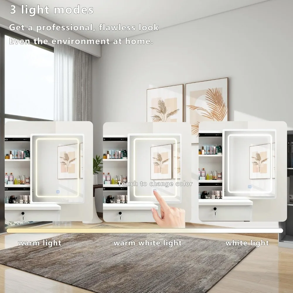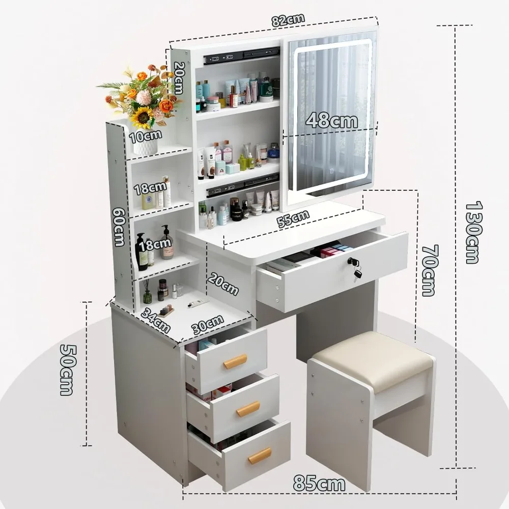 Positive Stimmung für einen guten Start in den Tag: Ganz gleich, welche Herausforderungen auf Sie zukommen, vertrauen Sie auf Ihre innere Stärke. Nehmen Sie an Ihrem Schminktisch Platz, kleiden Sie sich selbstbewusst und lassen Sie Ihr Lächeln im Spiegel widerhallen. Schenken Sie sich jeden Morgen ein strahlendes Lächeln. Viel Stauraum: Das beleuchtete Schminktisch-Set hat 4 Schubladen in 2 verschiedenen Größen und eine geräumige Tischplatte. Große Schubladen stehen für Schminkutensilien wie Haartrockner, Lockenwickler, Kämme usw. zur Verfügung. Die kleine Schublade eignet sich perfekt für Ihre Hautpflegeprodukte. Mehrere offene Ablagefächer sorgen für mehr Komfort. Beleuchteter Spiegel mit 3-farbiger Dimmfunktion: Bei diesem Schminktisch können Sie die Lichtfarbe ändern und die Helligkeit einfach anpassen. 3 Lichtfarbmodi umfassen kaltes Licht, warmes Licht und natürliches Licht. Entsprechend Ihren verschiedenen Make-up-Bedürfnissen können Sie Lichtfarben auswählen und die Helligkeit einfach anpassen. Perfekte Geschenke: Das Streben nach Schönheit liegt in der Natur der Frau und ist auch richtig. An bedeutungsvollen Feiertagen (Geburtstagen, Jubiläen, Valentinstag und anderen besonderen Tagen) ist diese Kommode mit beleuchtetem Spiegel, die speziell für Frauen entworfen wurde, das beste Geschenk für sie. Und natürlich können wir (Frauen und Mädchen) sie persönlich kaufen, um die Vorteile von Freude und Komfort zu ernten. Kinderleichte Montage: Mit klaren, leicht verständlichen Anweisungen und beschrifteten Teilen können Sie diesen Schminktisch ohne großen Aufwand aufbauen. Wenn bei diesem Tisch Teile fehlen oder er durch den Transport beschädigt wurde, machen Sie sich bitte keine Sorgen. Kontaktieren Sie uns einfach. Wir werden Ihnen innerhalb von 24 Stunden antworten und Ihnen eine zufriedenstellende Lösung bieten.