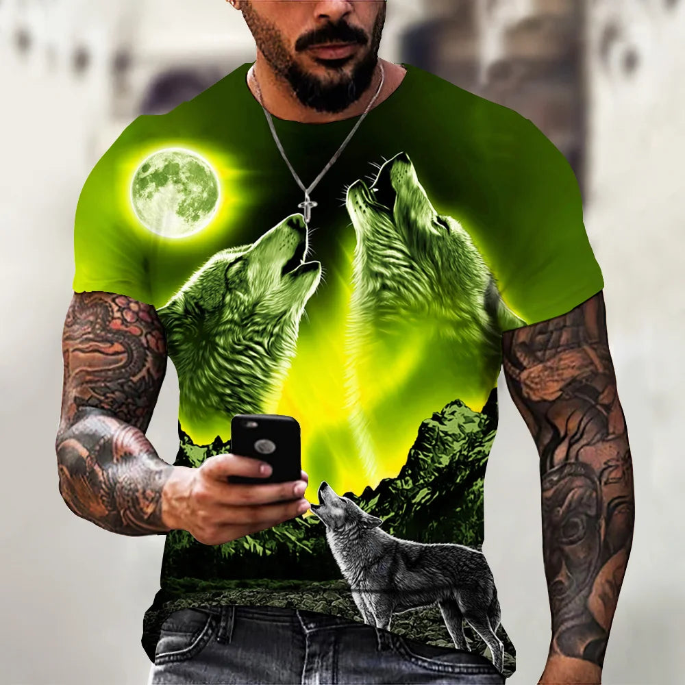 Übergroßes Streetwear-T-Shirt mit 3D-Wolf-Print für Herren