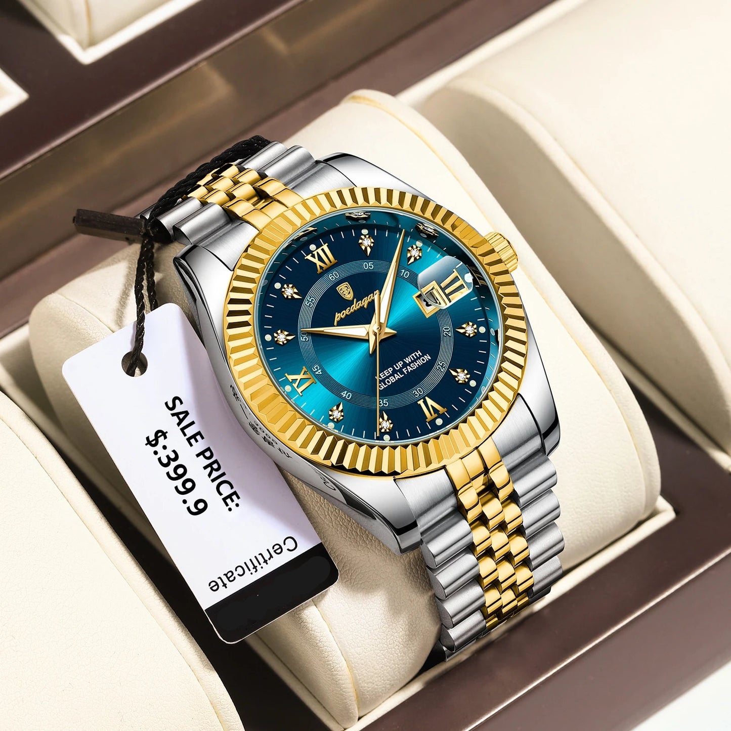 Wasserdichte, leuchtende Sportarmbanduhr aus Edelstahl für Herren
