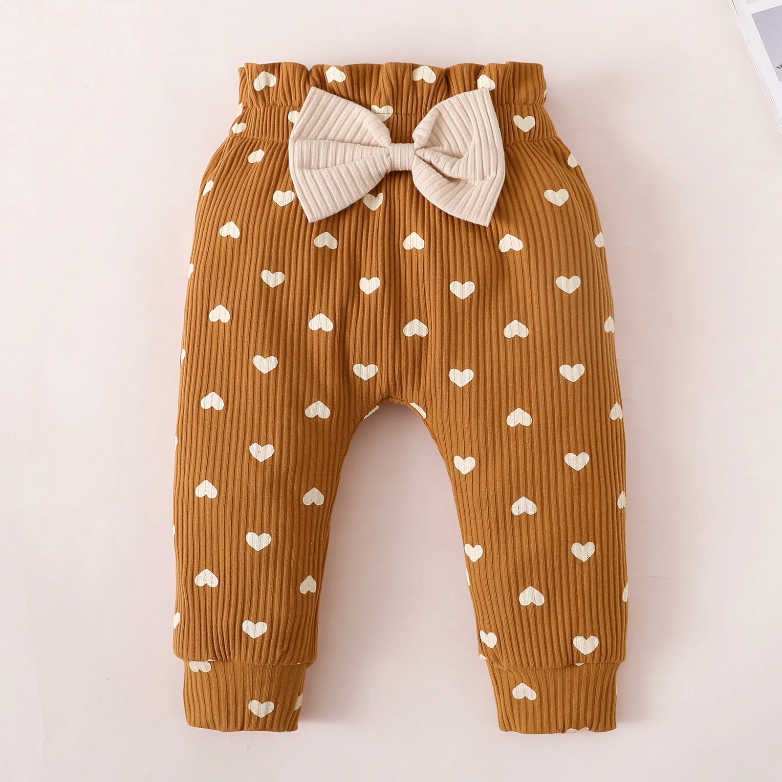 Herbst 3 stücke Kleinkind Neugeborenes Baby Mädchen Kleidung Set Langarm Stricken Top Body Gedruckt Liebe Herz Hosen Stirnband Outfit