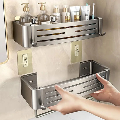 Badezimmerregal und Handtuchhalter aus Aluminium ohne Bohren