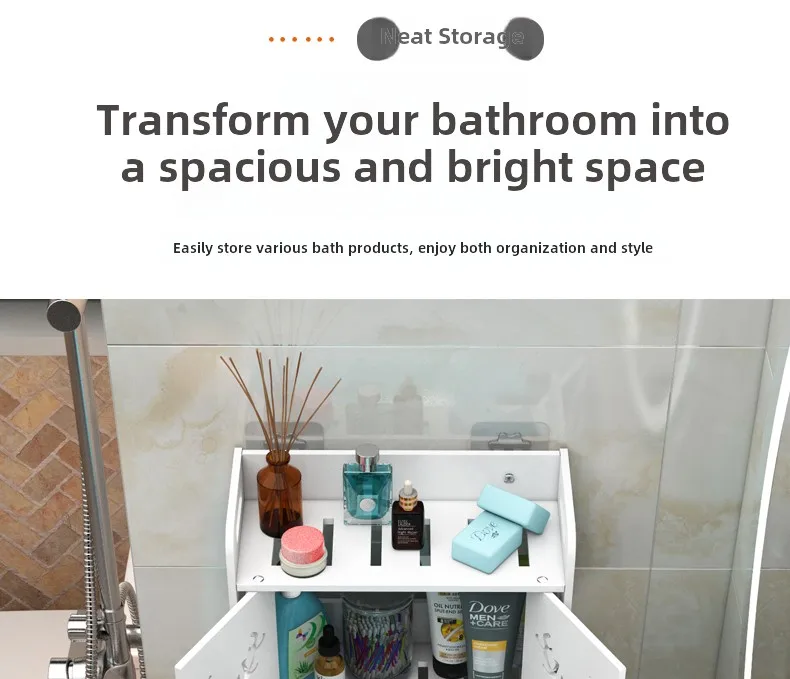 Integriertes Ablagefach ermöglicht die bequeme Unterbringung von Toilettenartikeln und anderen Badezimmerutensilien.
