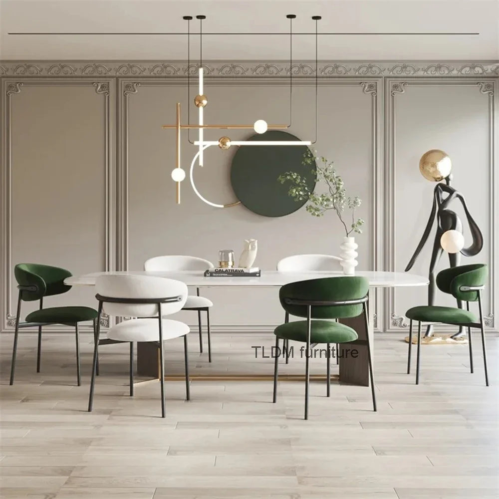 Nordische Luxus-Esszimmerstühle mit schwarzen Metallbeinen