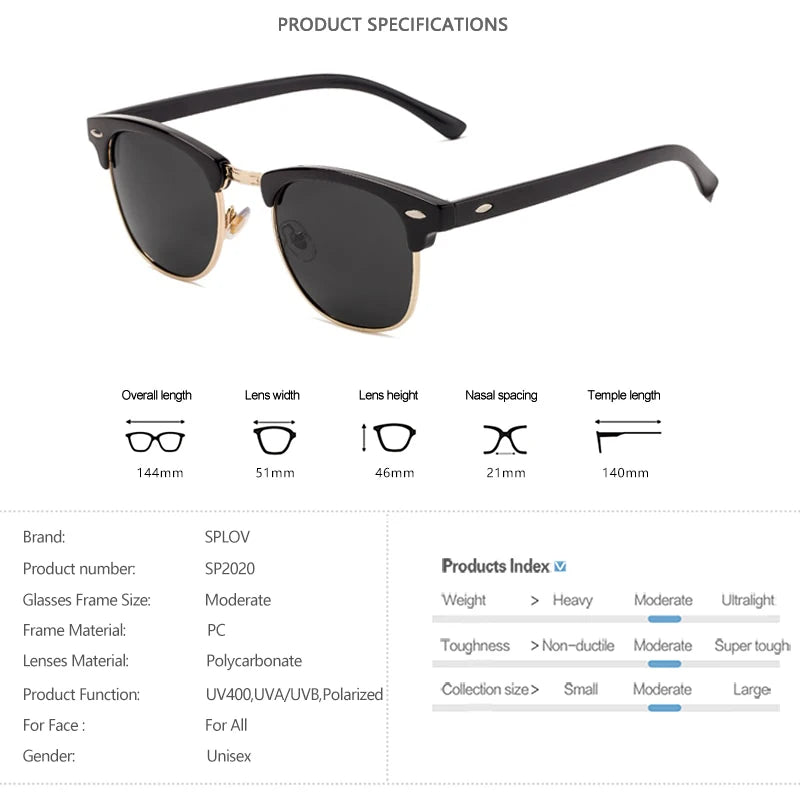Halbrandlose polarisierte Sonnenbrille Unisex Designer Halbrahmen Brille