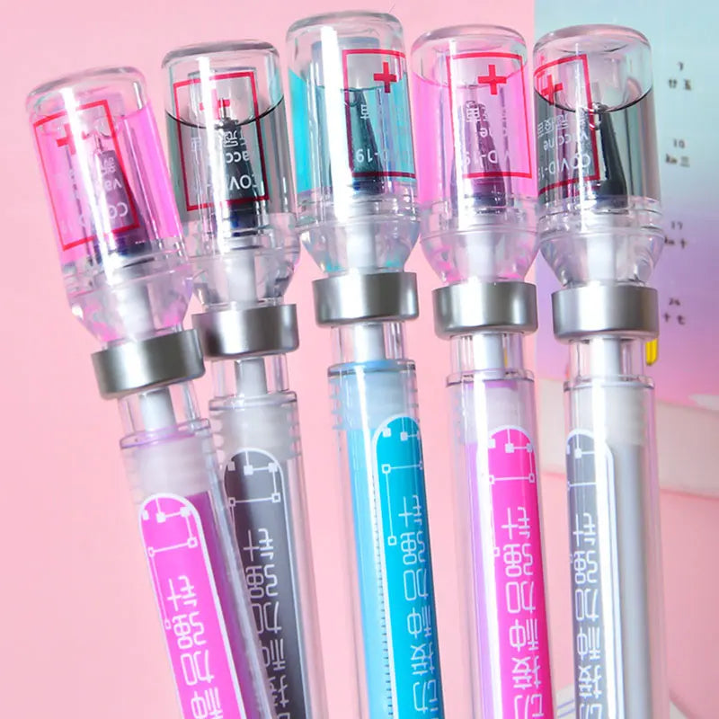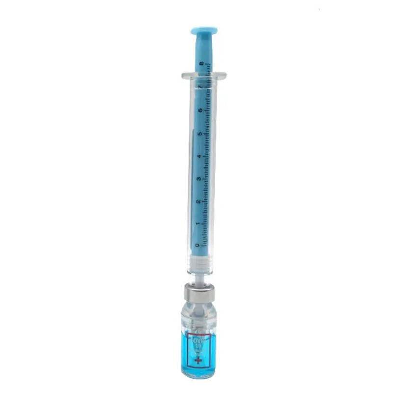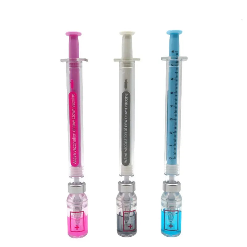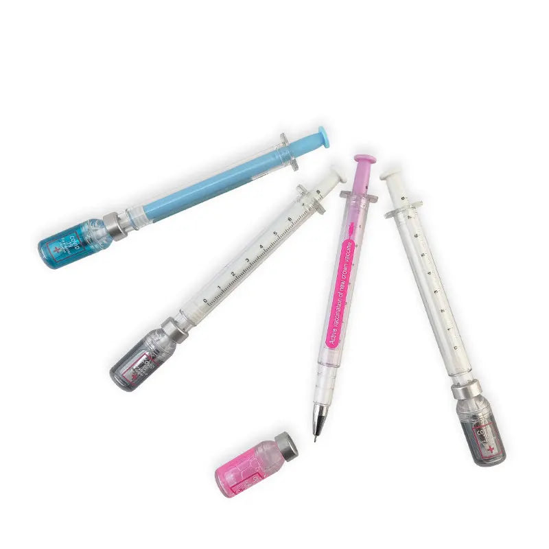 Gelstift mit Spritzensimulation – Schwarzer Signaturstift mit Impfstoffdesign