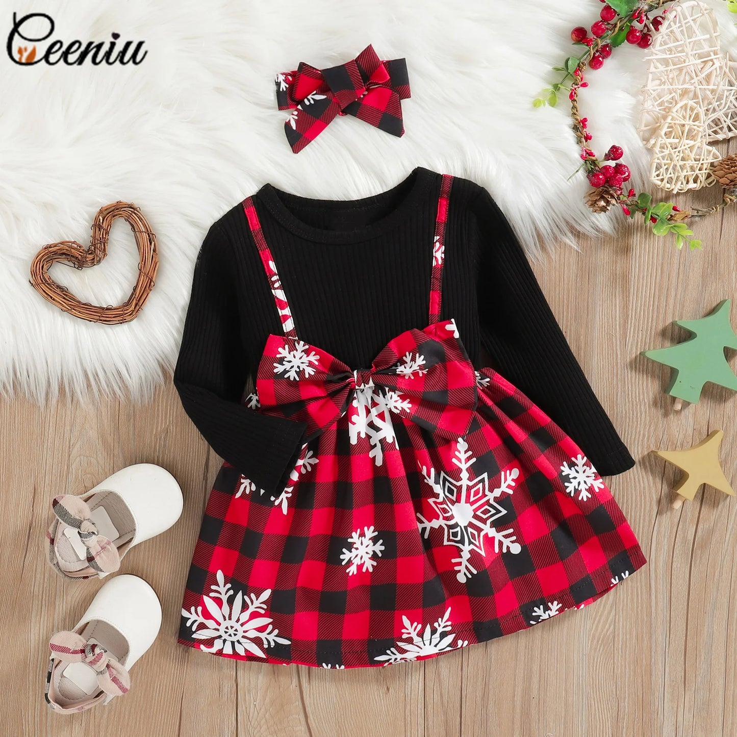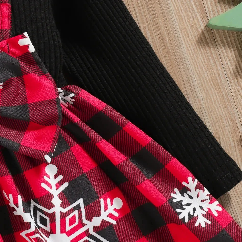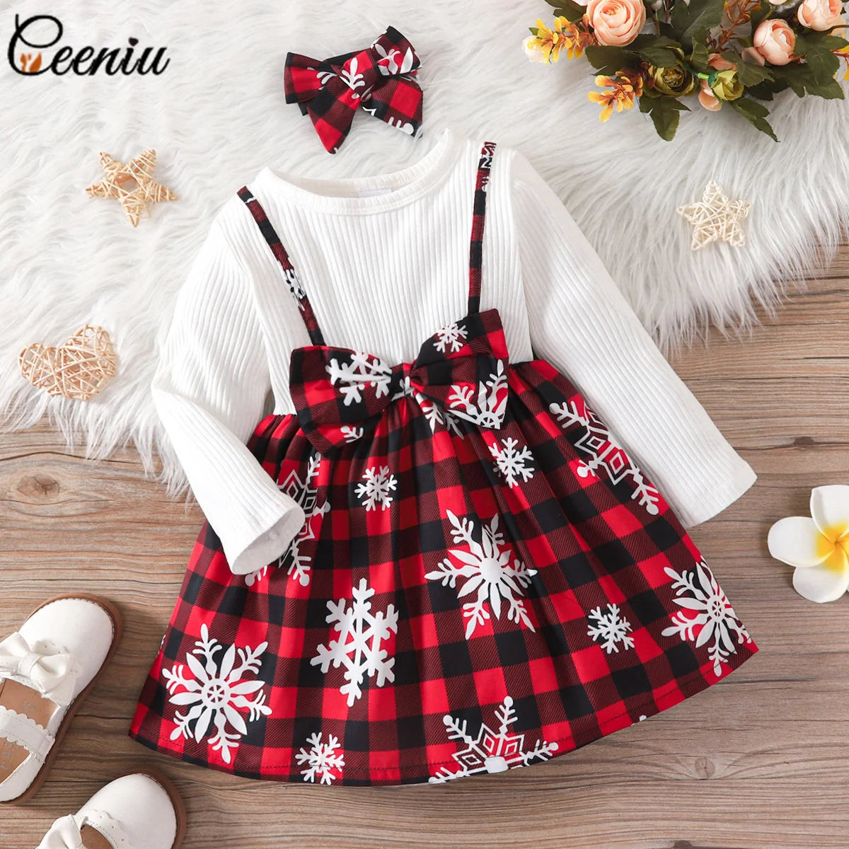Zweiteiliges Baby-Mädchenkleid mit Schneeflocken-Print und Schleife