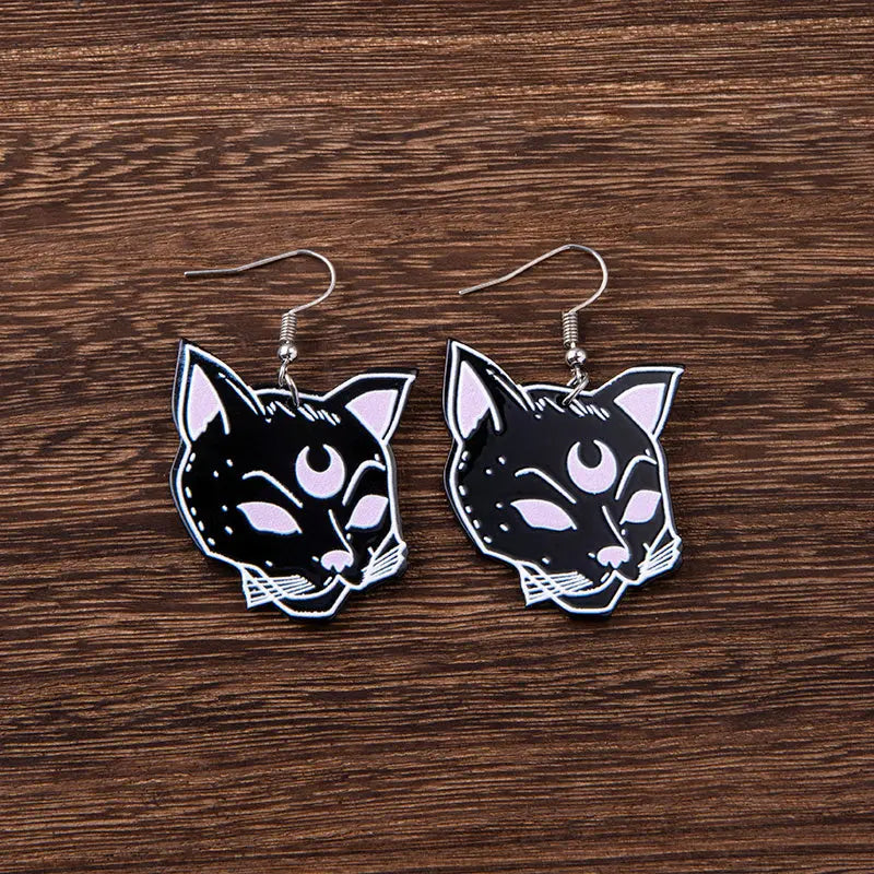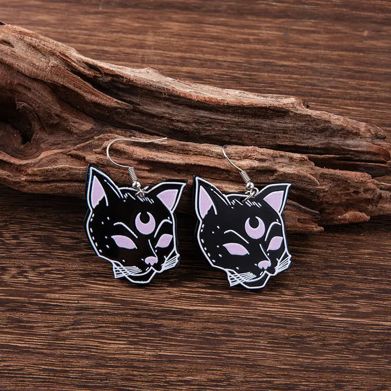 Gruselige schwarze Katzenschädel Ohrringe