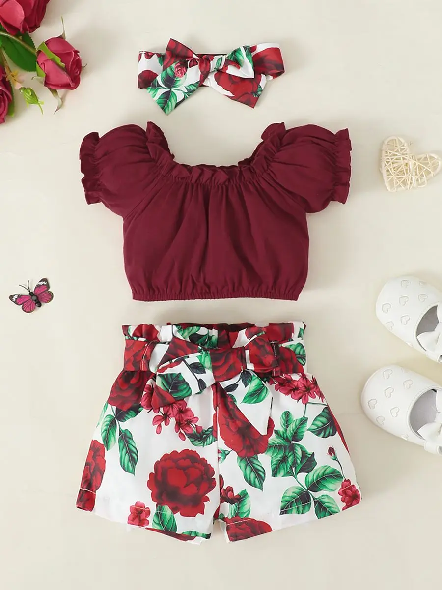 Sommer Baby Mädchen 4-teiliges Set einfarbige Jacke
