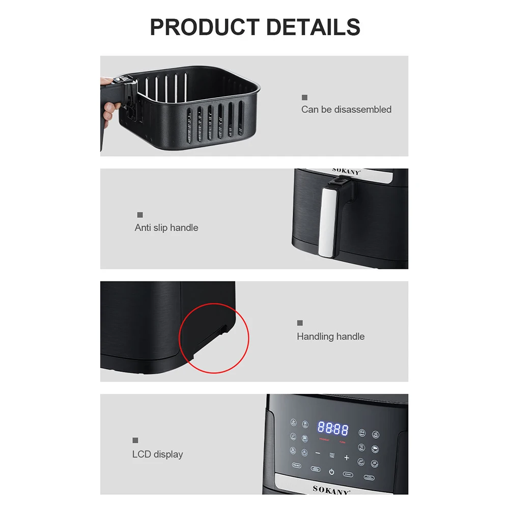 Touchscreen-Luftfritteuse mit Antihaftbeschichtung und tragbarem Timer, Elektroofen