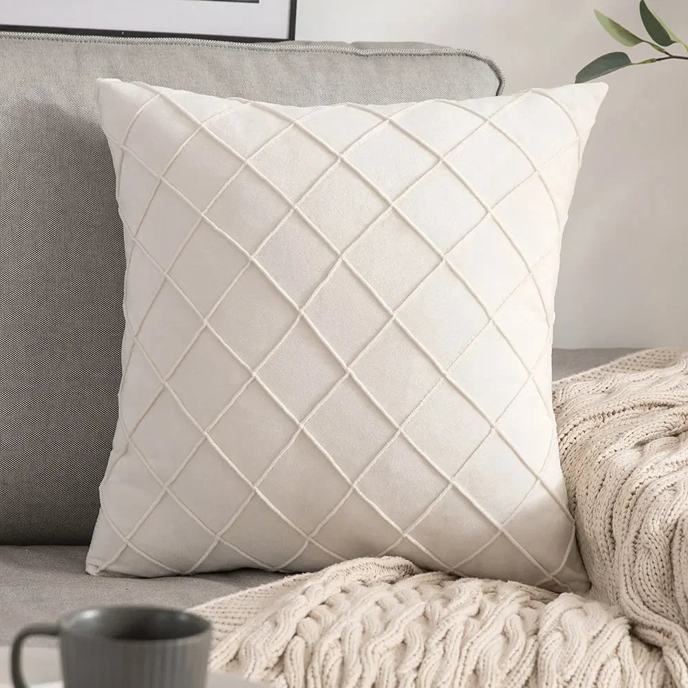 Samtgesteppter Kissenbezug mit Rautengittermuster – weicher quadratischer Kissenbezug