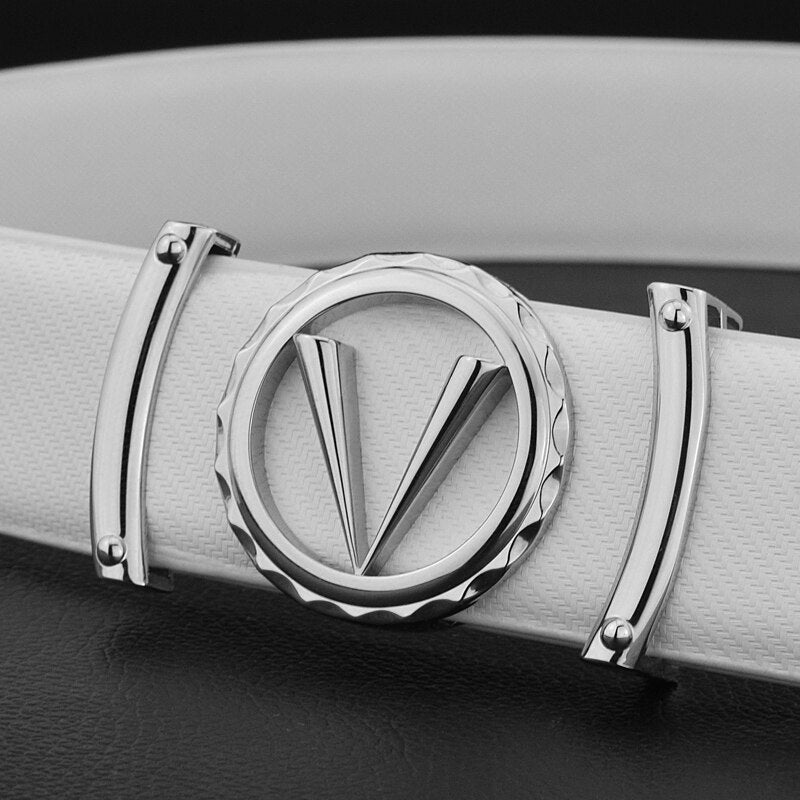 Weißer Ledergürtel mit V-Schnalle – stilvolles Herrenaccessoire