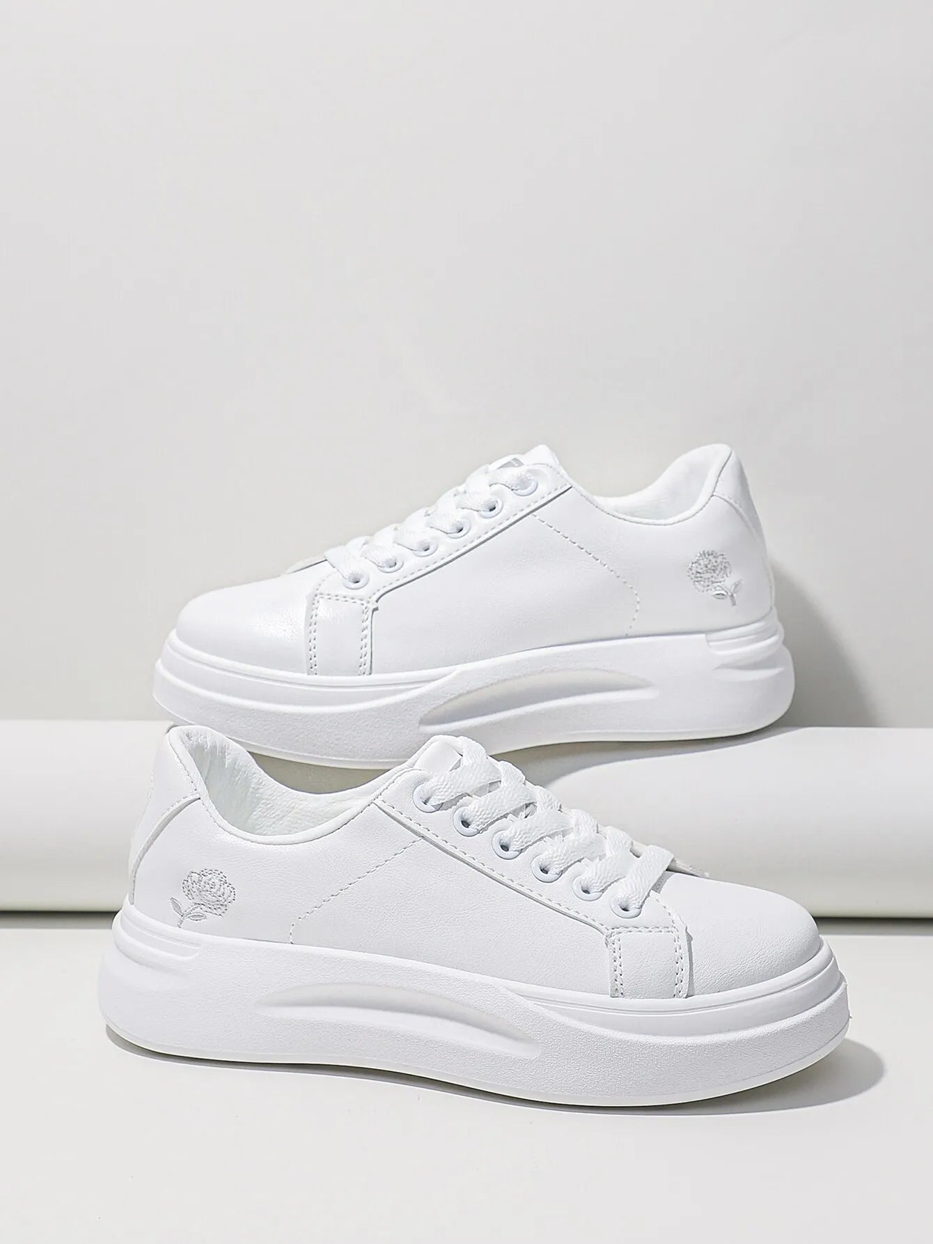 Stylische Damen-Sneaker zum Schnüren, weiß, mit Blumenmuster bestickt
