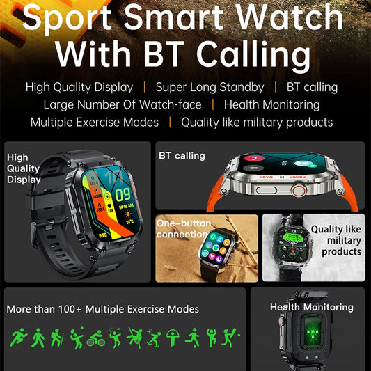 Montre connectée avec écran tactile HD de 1,96" (320 × 386), appels Bluetooth, suivi de la fréquence cardiaque et suivi d'activité en extérieur.