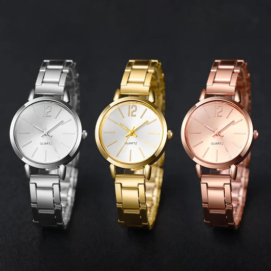 Montre-bracelet à quartz étanche pour femme en acier inoxydable or rose