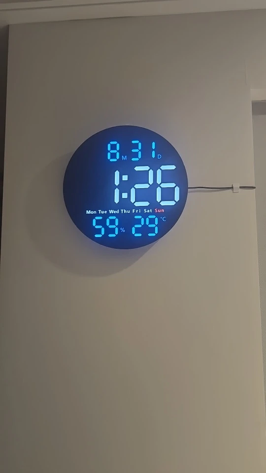 * Horloge murale au design moderne avec détection automatique de la lumière et réglage manuel de la luminosité.