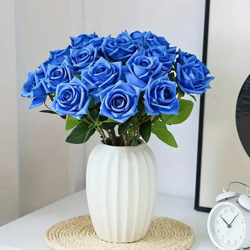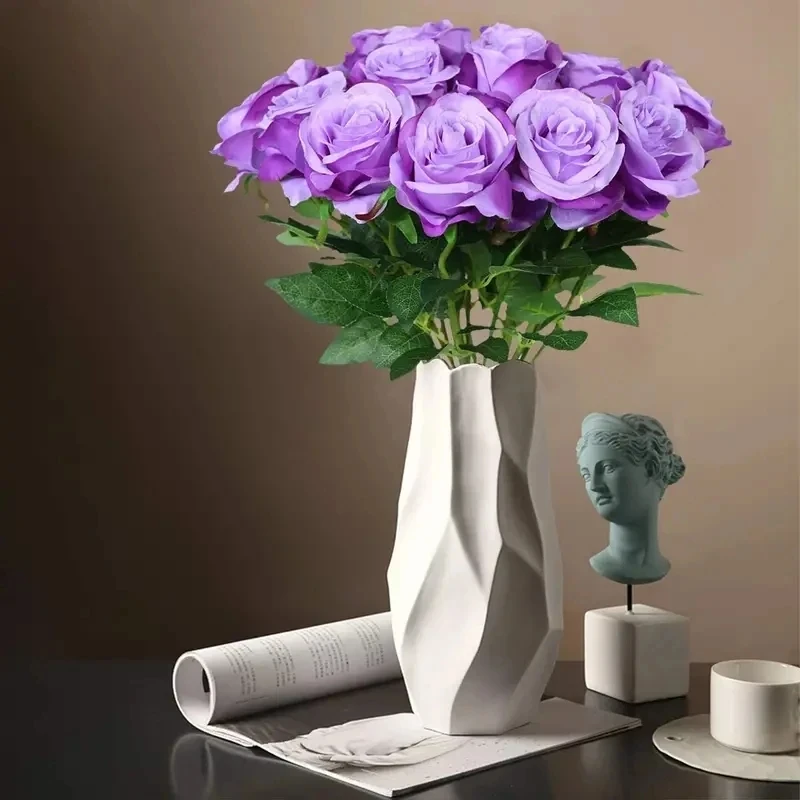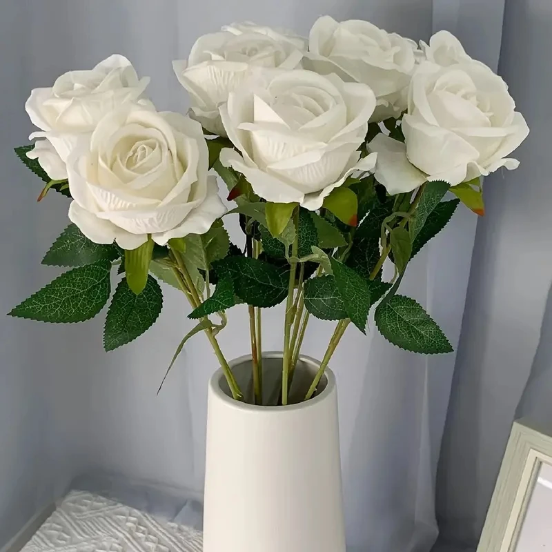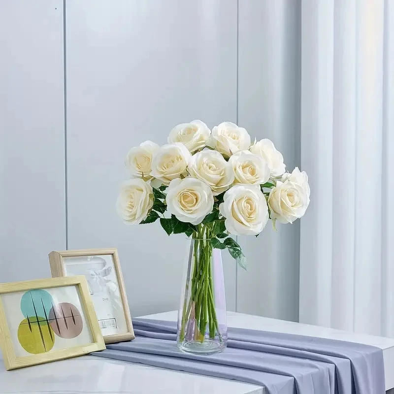 12 roses artificielles blanches à longue tige