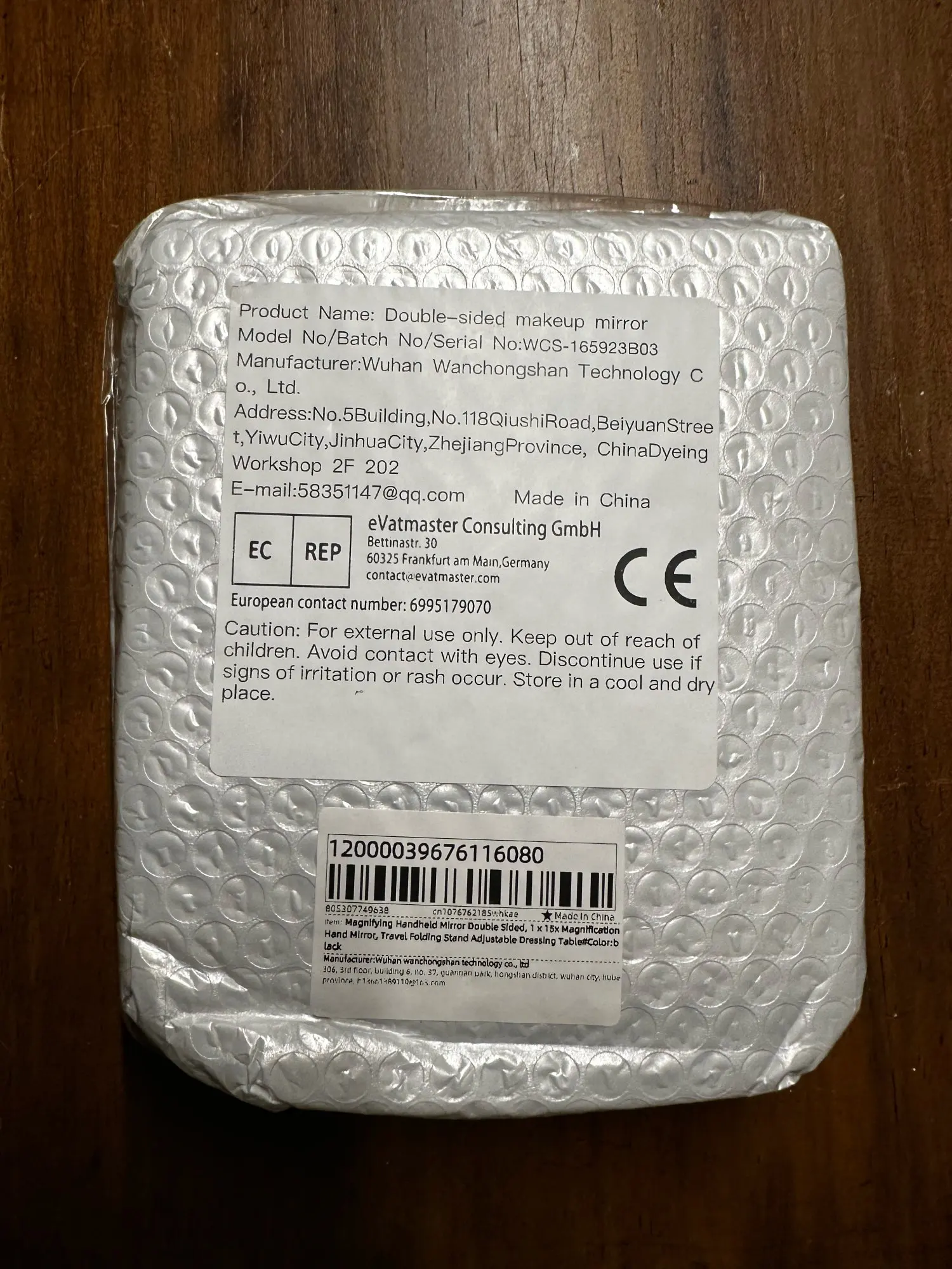 Arrived early, well-packaged and intact. Very good magnification (x15). I was about to buy a x30 mirror - glad i went with this one, because if this was doubled, i would probably be able to see inside my skin cells. It didn’t balance well on flat surfaces at first, was very wonky. Tightening the screws on the side solved the issue. Lastly, there are some imperfections around the outer edges of the mirrors on both sides. Not effecting the functionality, but i expected better production quality for its price. Still not bad.