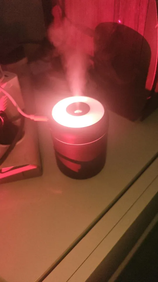 This is small but a good size holds a fair amount of liquid it's very simple easy to use works immediately the color to spray is great you have to hold it for a little bit the cord is inside the container you have to open it to find it and the vaporization is immediate and excellent and fine this should work well for the new baby for vaporizer or for a atomizer sent water whatever sprayer medicine during illness vaporizer like eucalyptus etc very simple very easy to use works really good as i think two different types of color displays you have to hold the button for a while to turn on the light and then you press it again and it will turn on the Vaporizing you can have the light on or off when you vaporize or you can just have the light on very cool really shows up well against the black i'm glad i got black