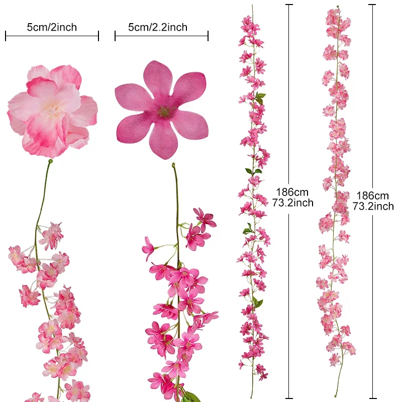 Combinaison parfaite : nous avons 4 pièces de vignes de fleurs de cerisier artificielles roses pour vous, avec des fleurs pleines et des couleurs riches, rendant la décoration plus superposée.